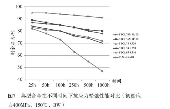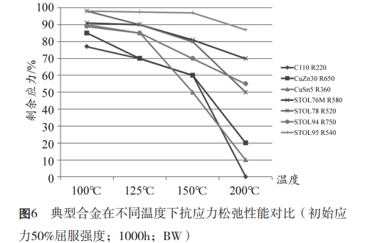 应力松弛即在维持恒定变形的材料中,应力会随时间的增长及温度的升高而减小的现象。通常通过材料在高温下一段时间后(对于汽车连接器为1000h),其屈服强度仍能达到常温下屈服强度的70%以上,以衡量该材料具有一定的抗应力松弛能力。
