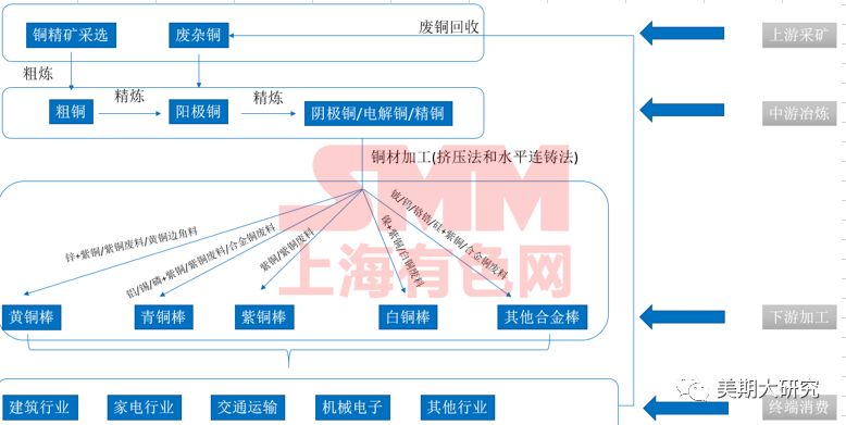 铜产业链:铜矿采选、铜冶炼、铜加工、铜消费、铜贸易、铜拆解、废铜回收......