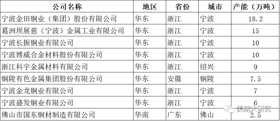 铜产业带:长三角、珠三角、环渤海、浙江、江苏、上海、安徽、江西、山东.....