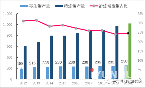 图5:冶炼端再生铜的产量(新废+旧废)