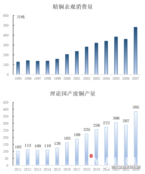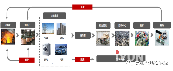 1、铜产业链总的废铜供应大多指的是通过终端消费回收利用的旧废,这部分的产量流入加工端则影响一部分精铜消费,流入冶炼端则是增加精铜的供应。