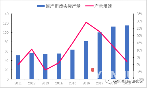 图4:国产旧废实际产量及增速